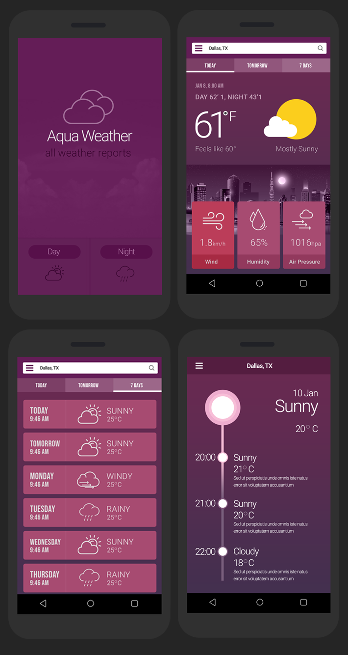 A Mobile App designed for the Aqua Weather. I was asked to design this Mobile App, featuring a large number of "stories" explaining the business model and ideas.